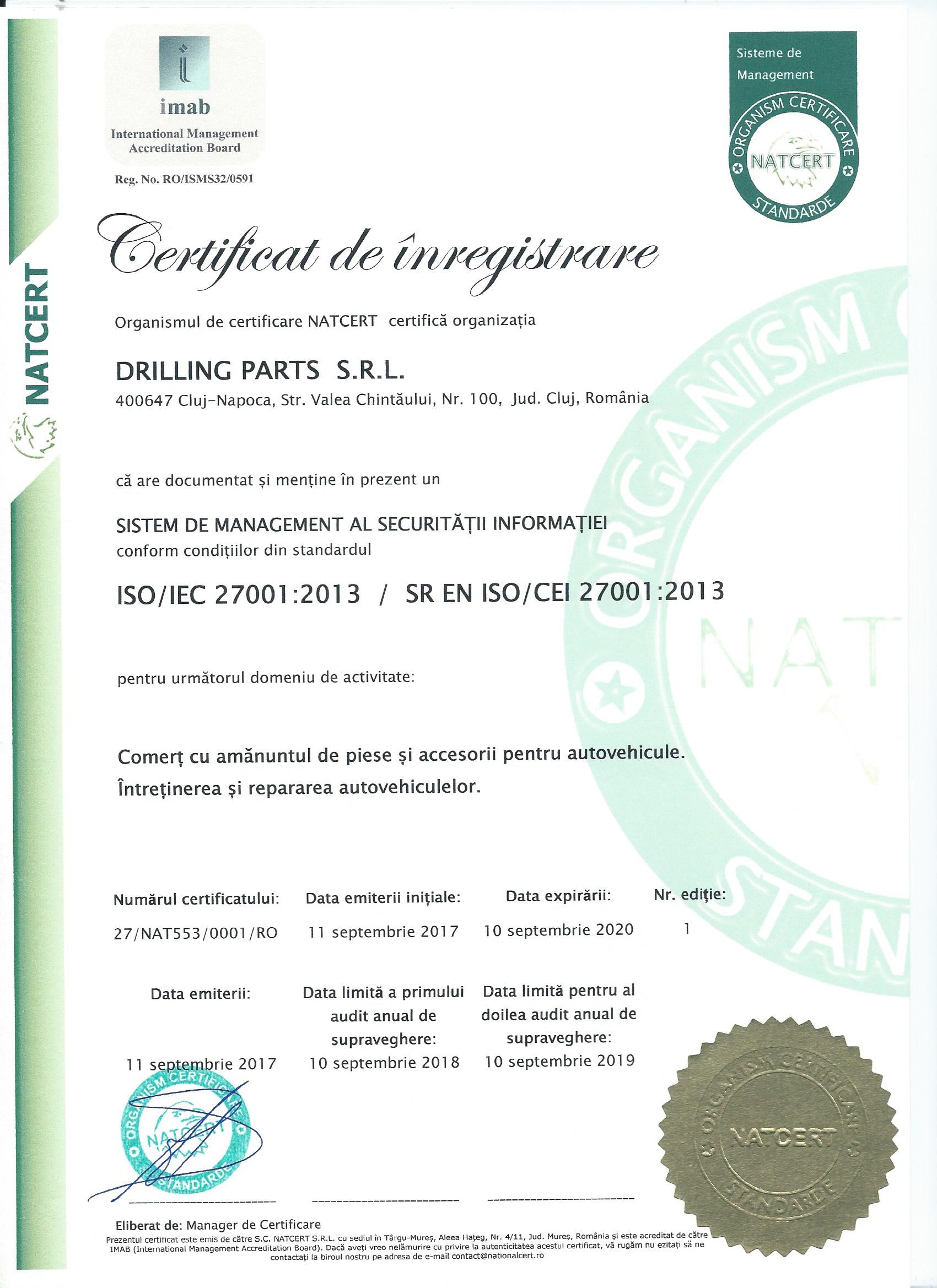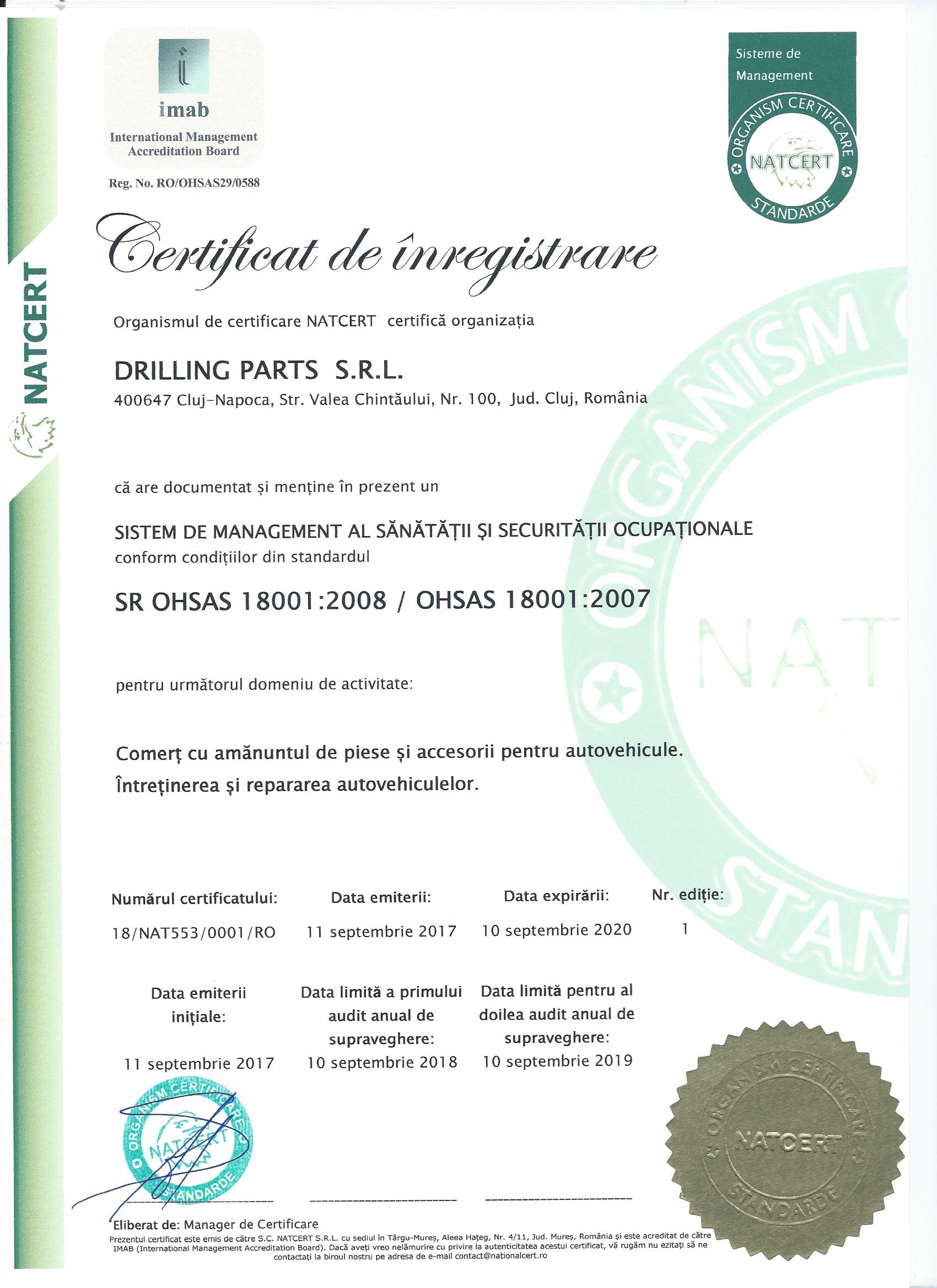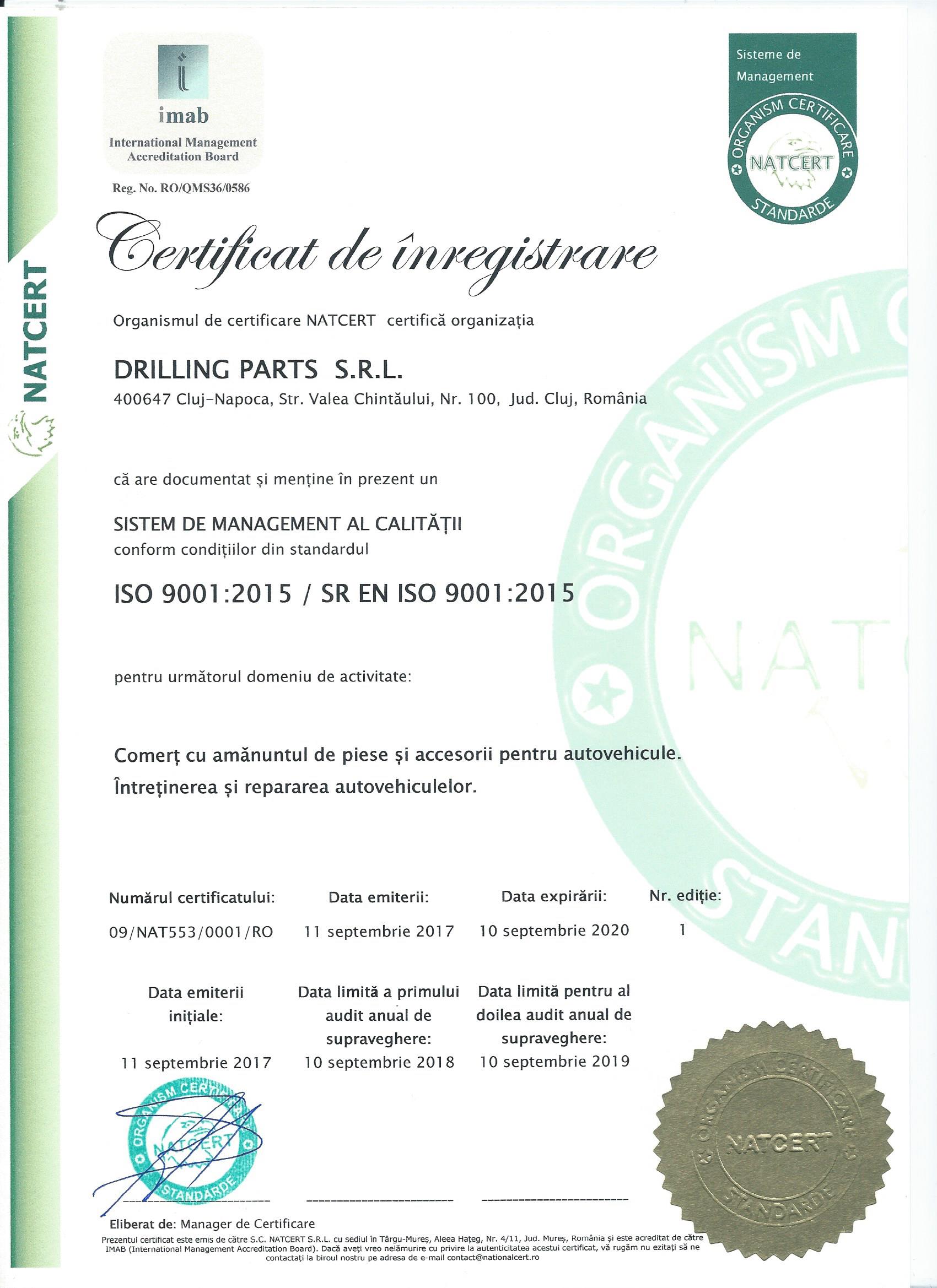 DRILLING PARTS ESTE CERTIFICATA